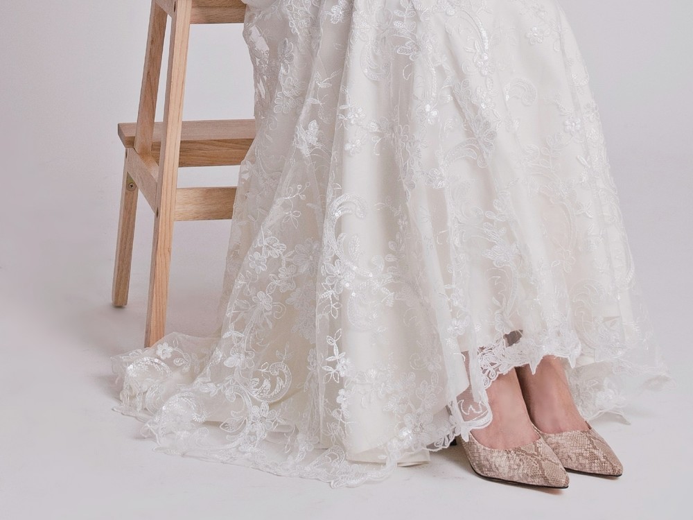 하트넥의 간결한 디자인과 플라워레이스의 조화로움이 느껴지는 블라썸 드레스.