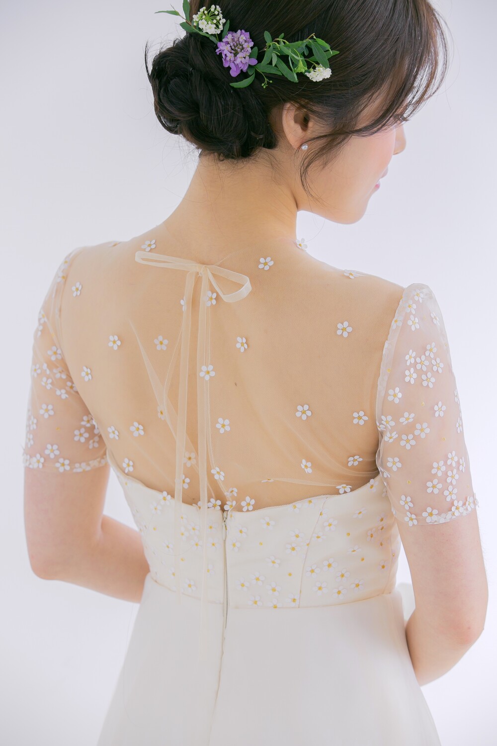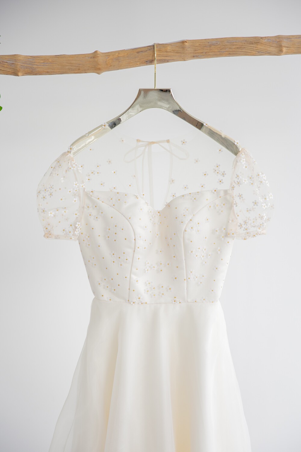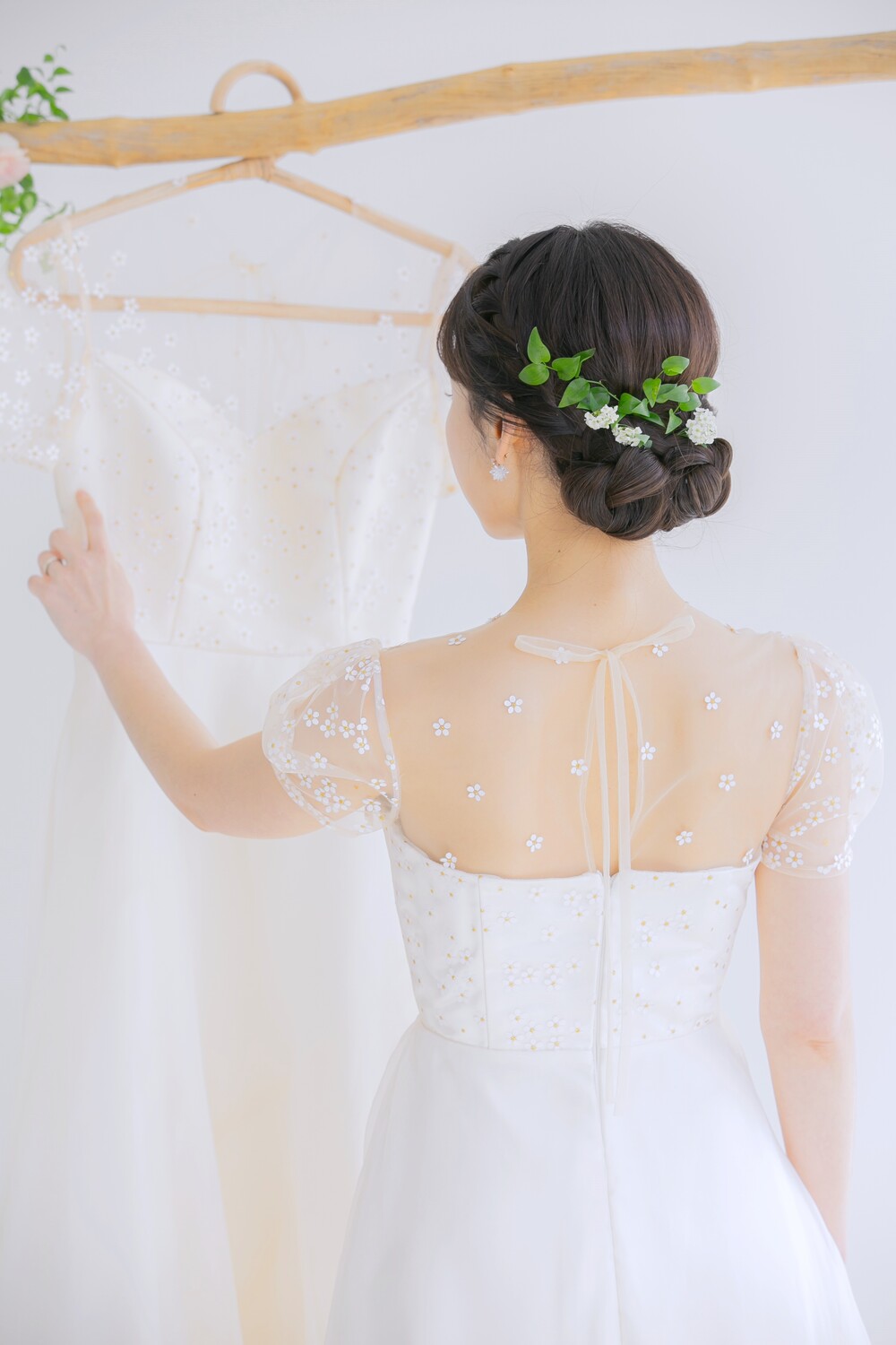 모델 착용 드레스는 화이트 안감을 사용하였습니다. 뒤쪽에 걸려있는 데이지 드레스와 미세한 색감 차이를 확인해주세요 :)