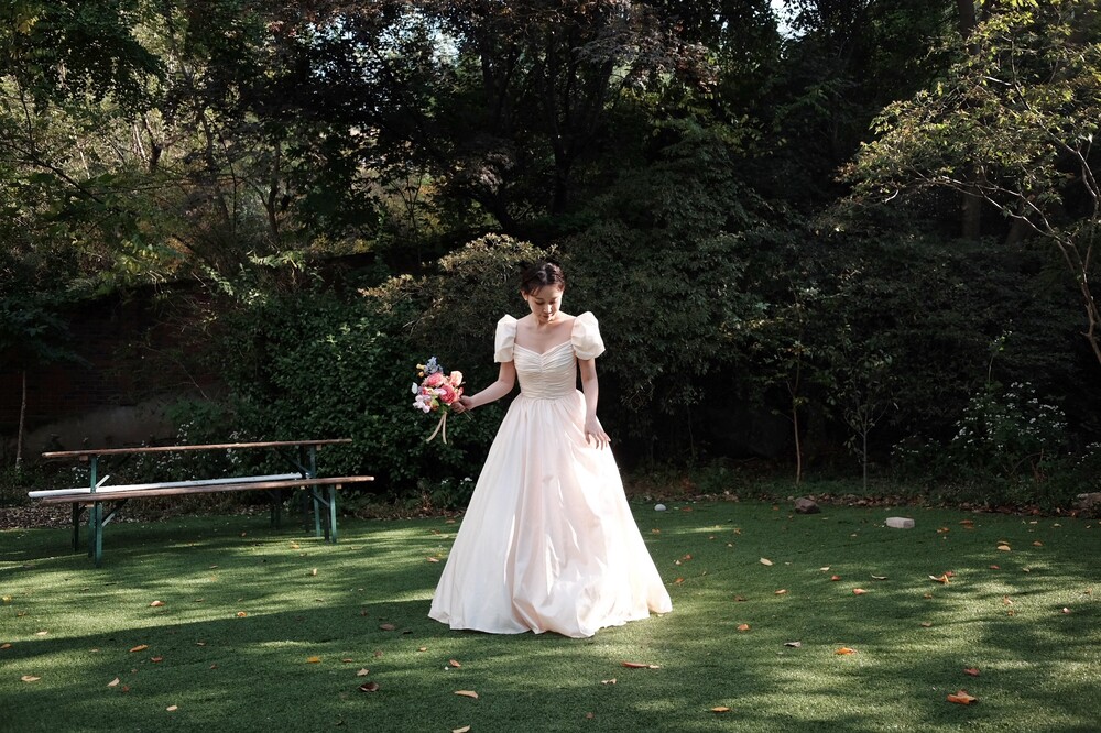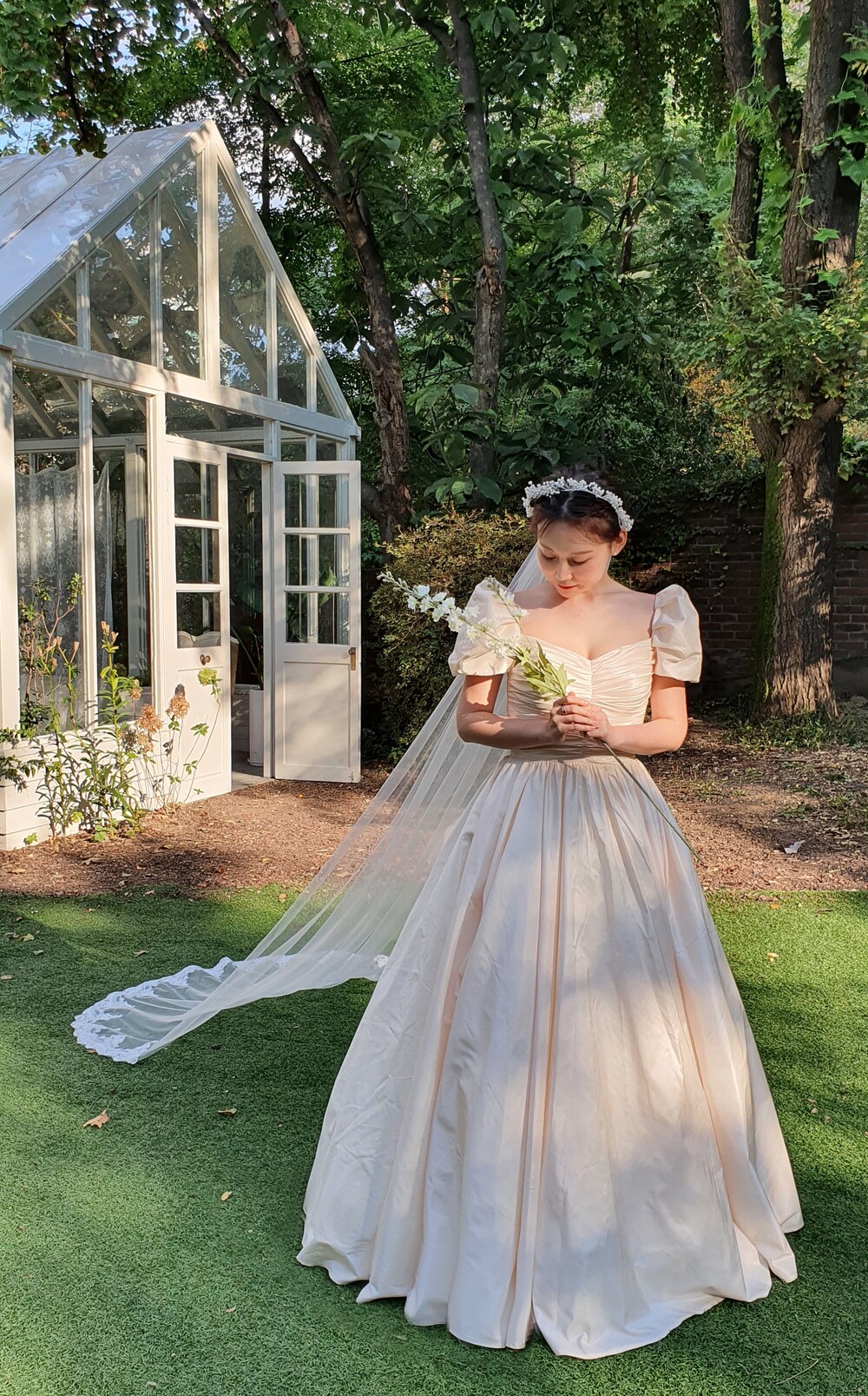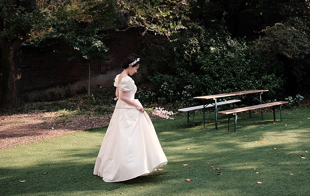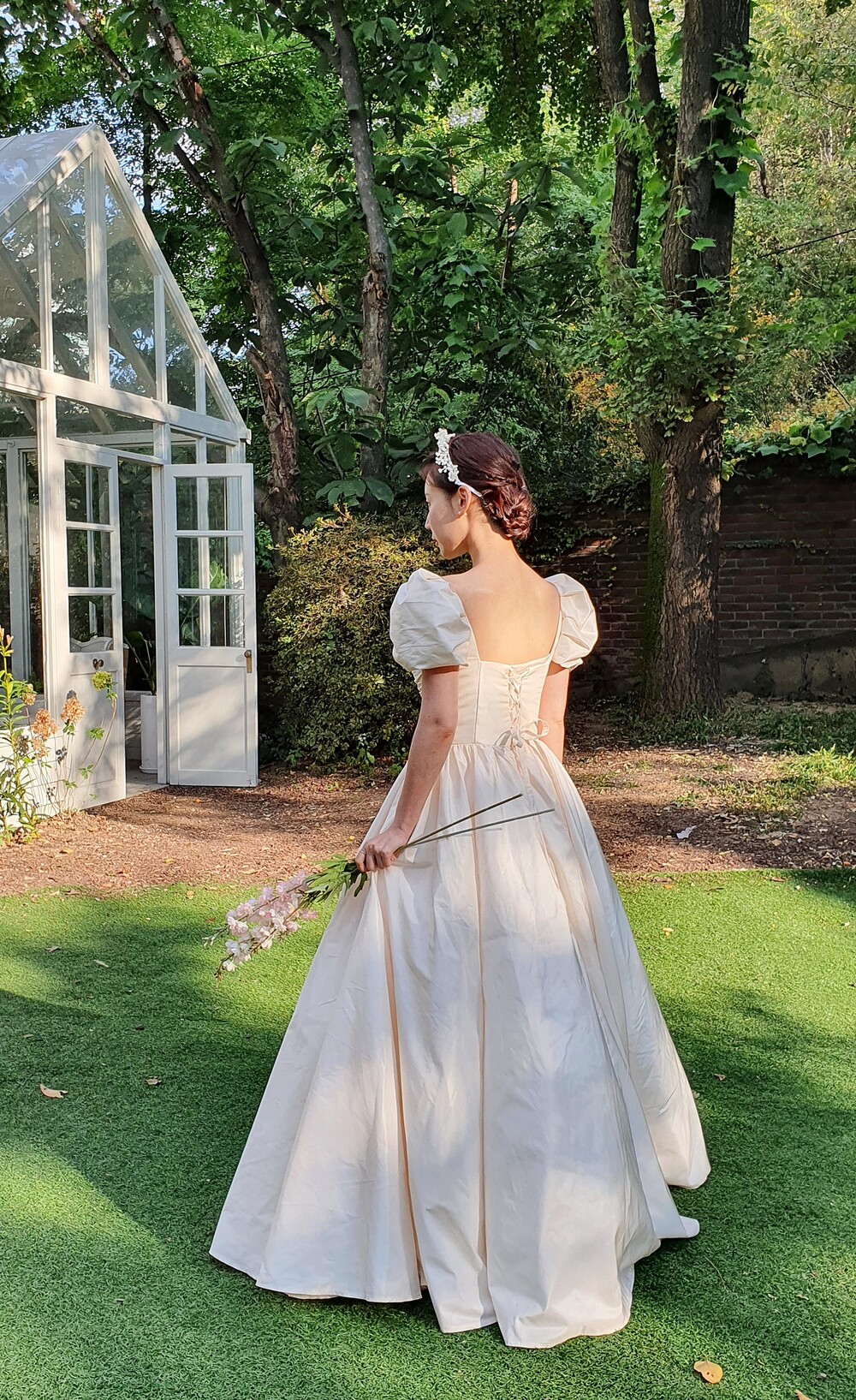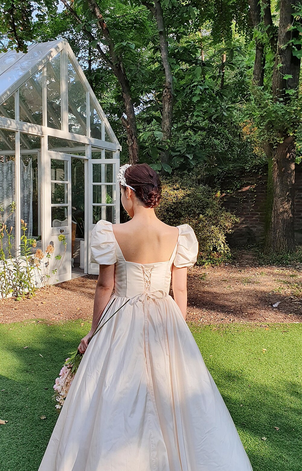 영화 브리저튼 속 의상에서 영감을 받아 조금은 현대식으로 재해석한 드레스입니다.