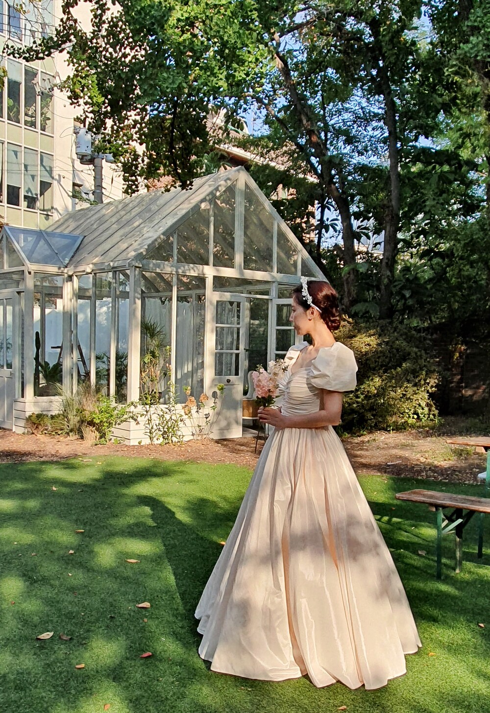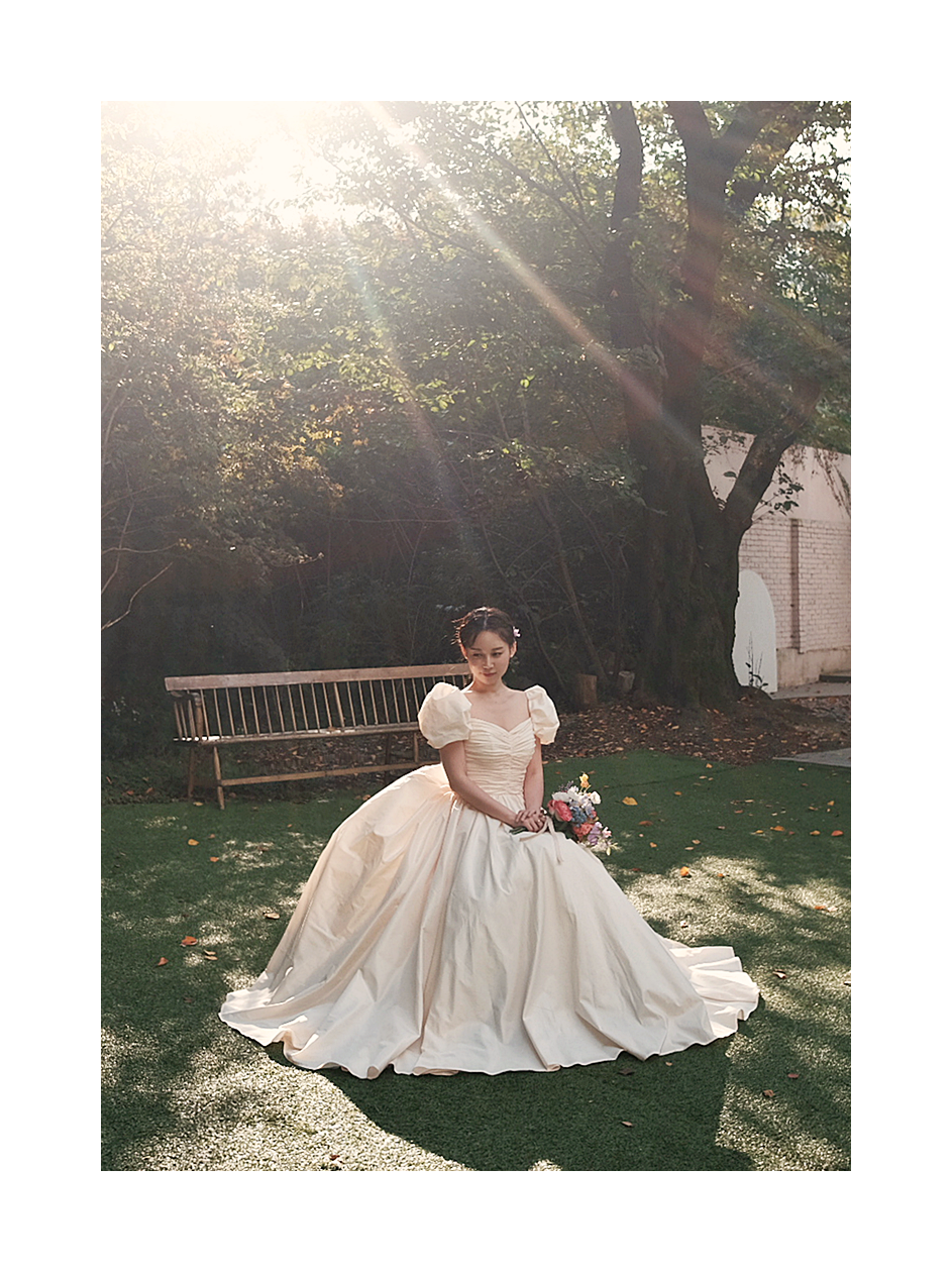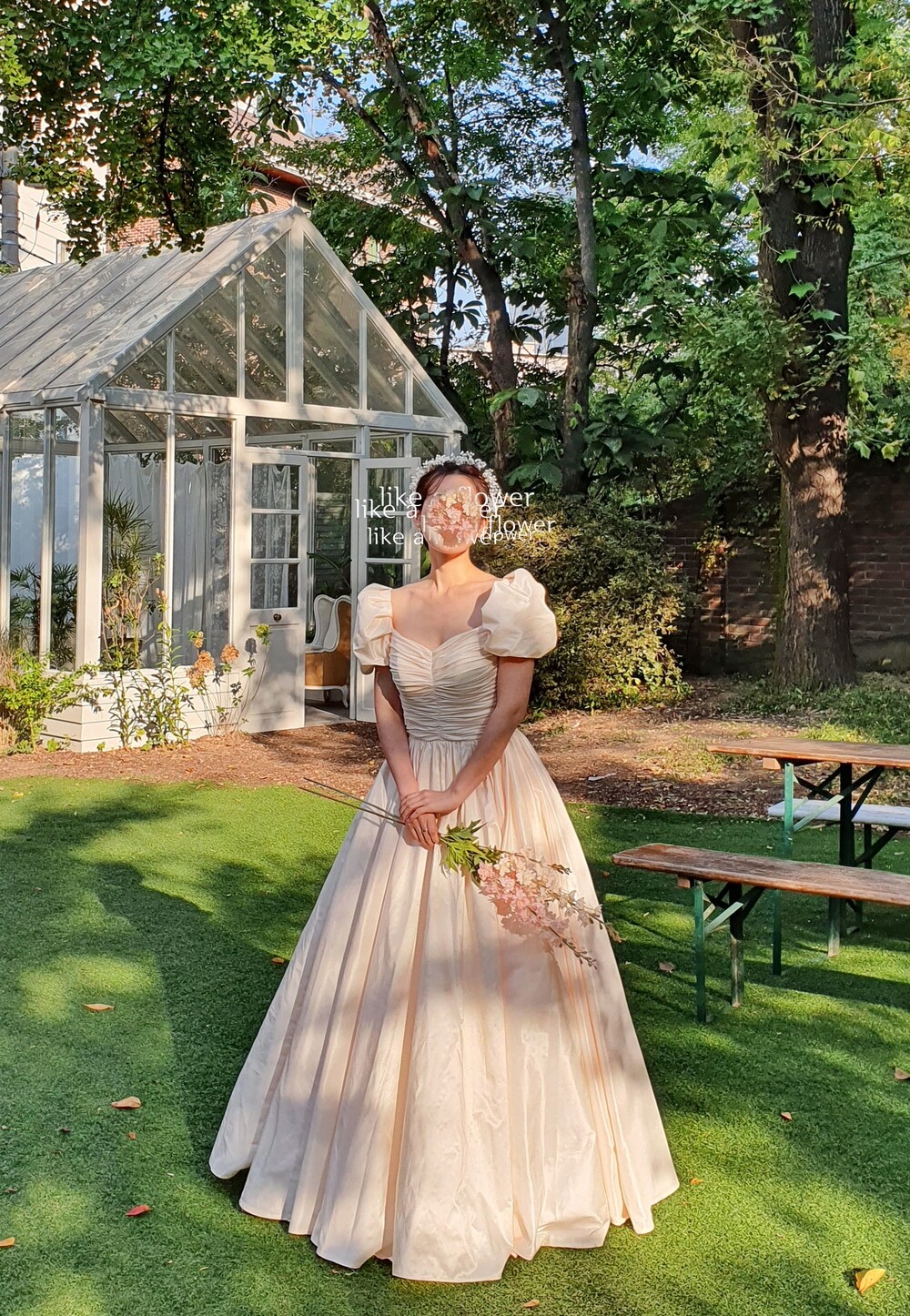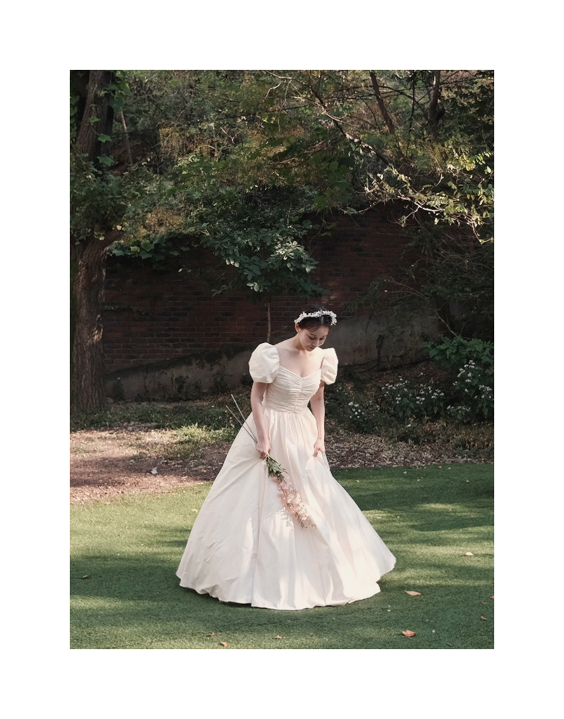 가슴부분의 셔링과 퍼프소매가 마치 디즈니공주를 연상시키기도 하는데요,