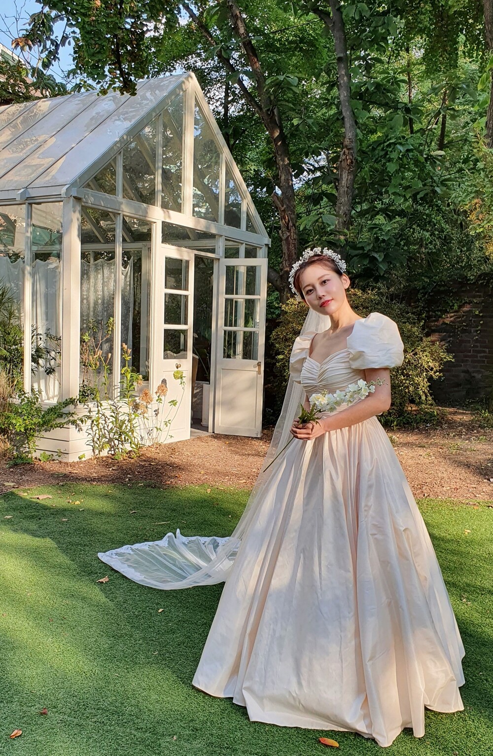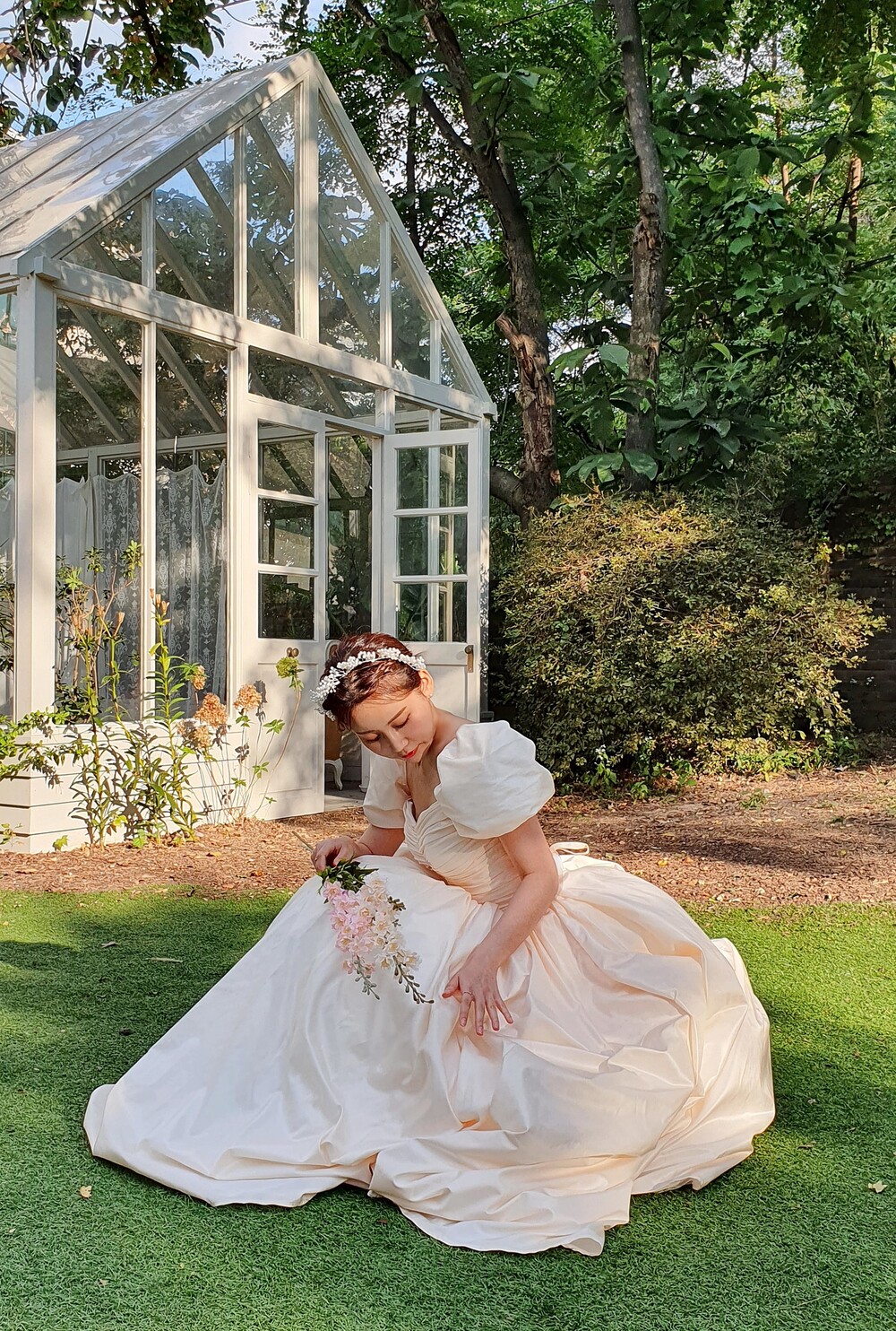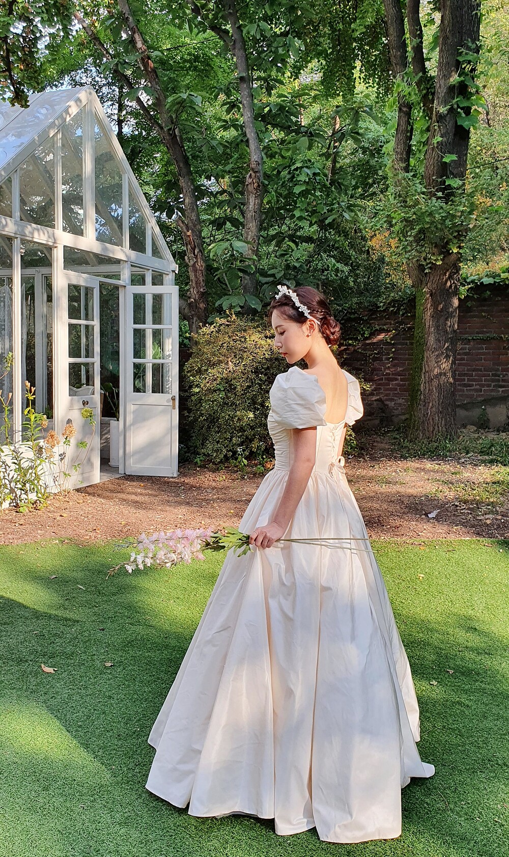 가슴부분의 셔링과 퍼프소매가 마치 디즈니공주를 연상시키기도 하는데요,