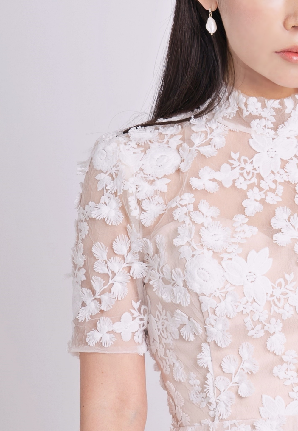 직조감이 느껴지는 케미컬레이스 소재를 사용하여 조금 더 입체감이 느껴지며