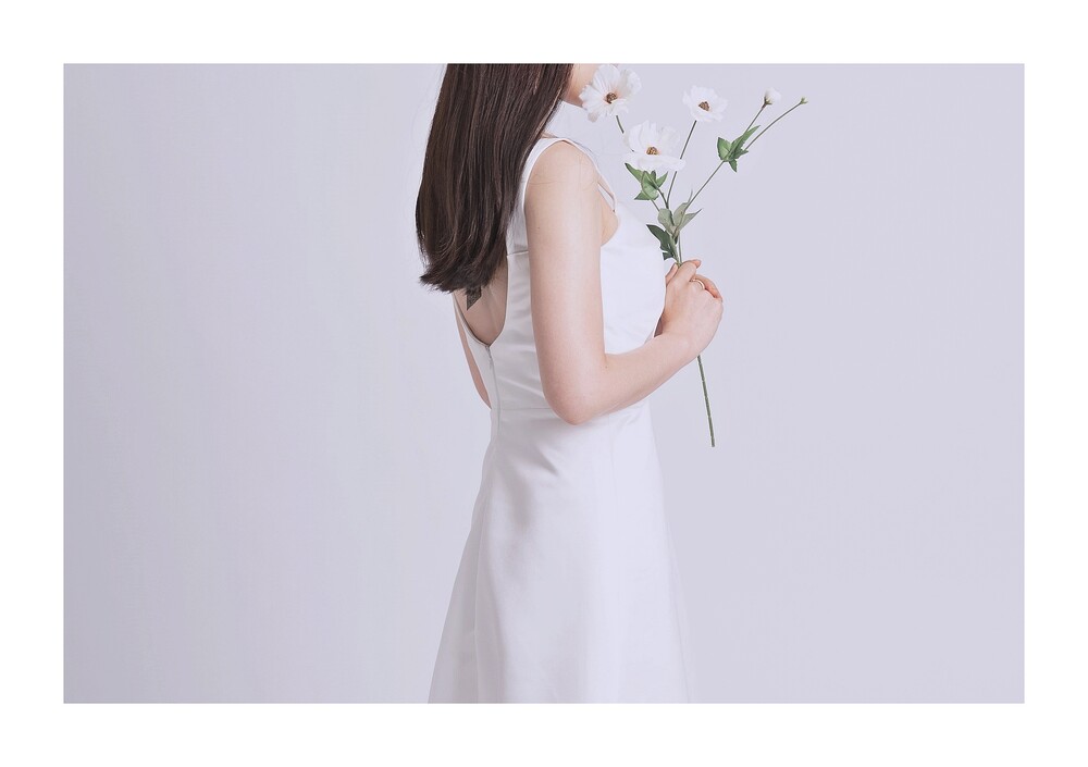 길지 않은 기장감으로 활동성도 좋아 리셉션드레스로도 잘 어울리며