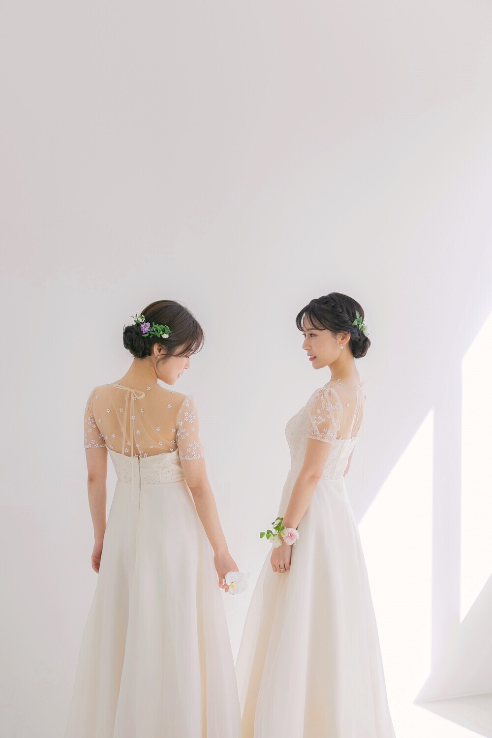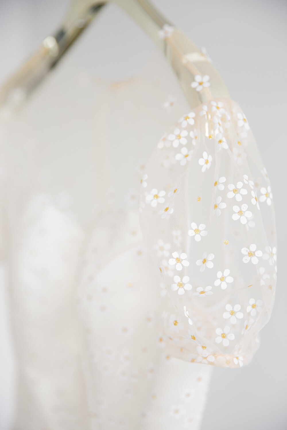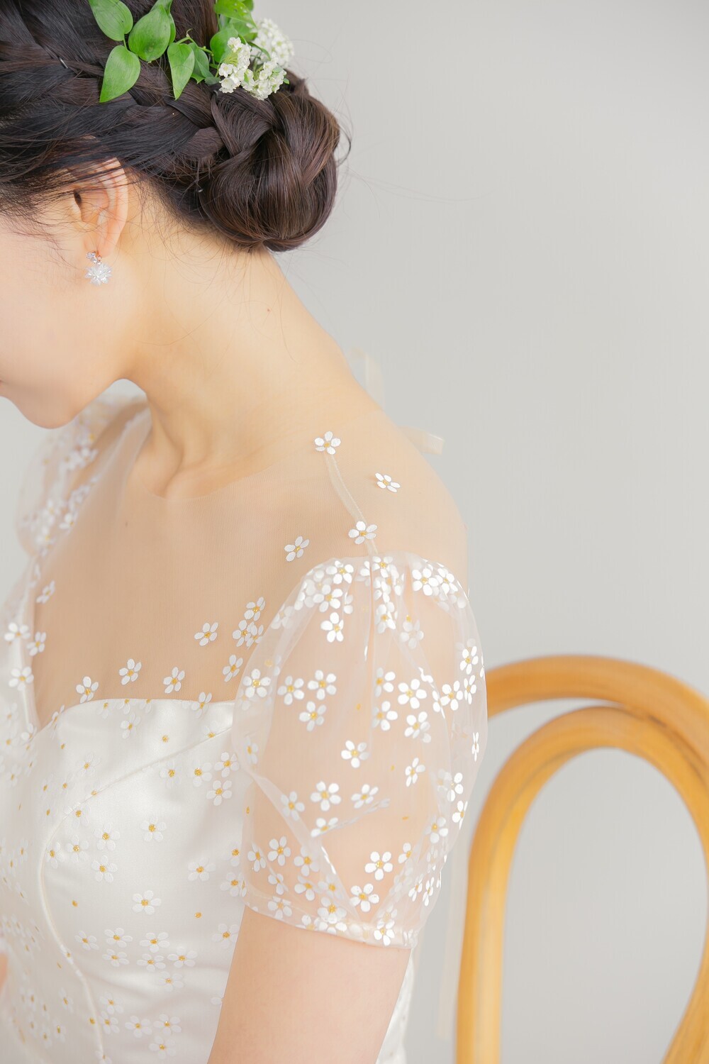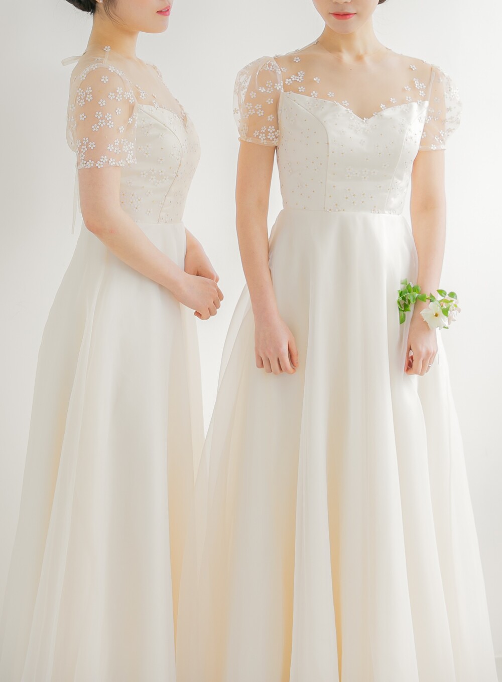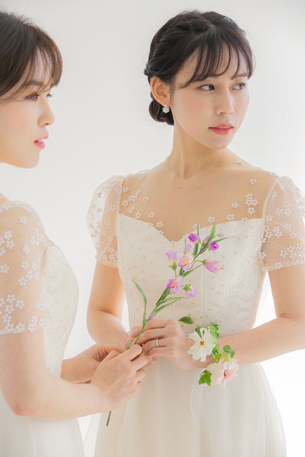 튤 위로 수놓아진 작은꽃들이 사랑스러움을 가득 표현해주는 데이지 드레스.